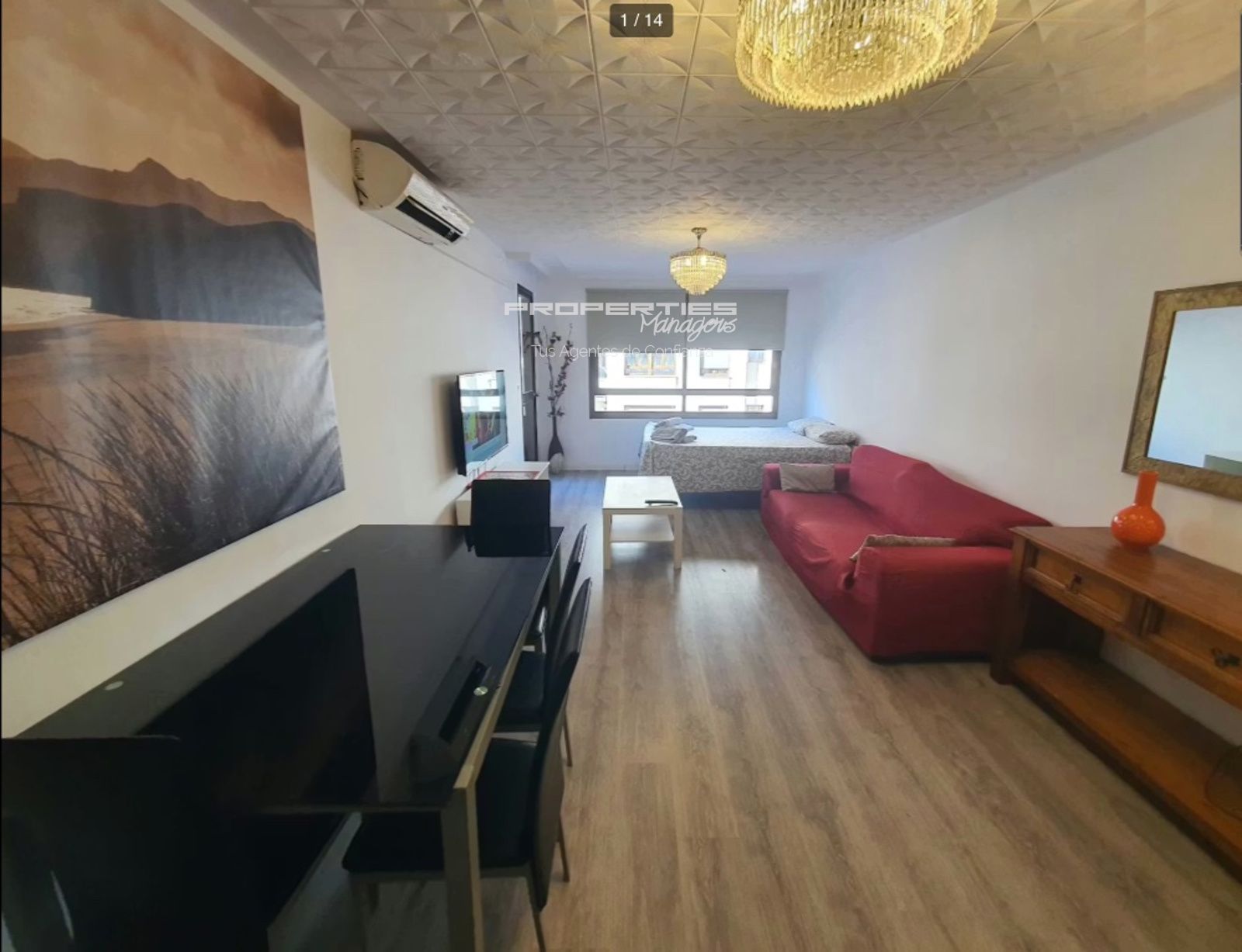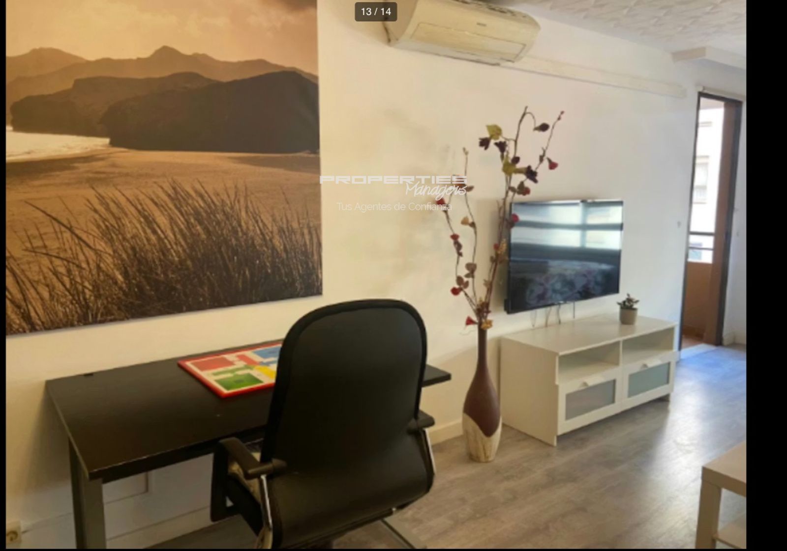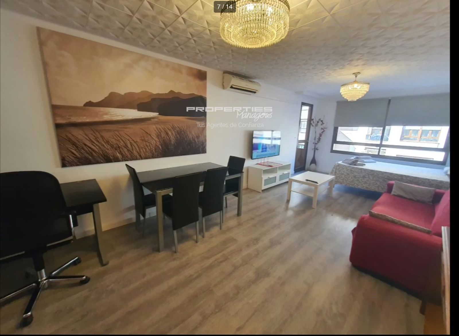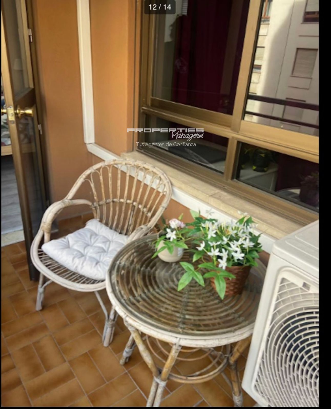 Además, la vivienda dispone de un pequeño balcón con mesa y sillas, ideal para relajarse. Los acabados en madera, suelos modernos y detalles decorativos crean un ambiente cálido y agradable. El piso también cuenta con aire acondicionado.